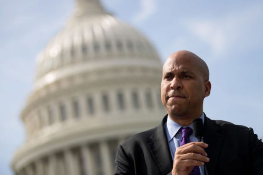 Sen. Cory Booker (D., N.J.) wants President Donald Trump to resign like Sen. Al Franken (D., Minn.) did over allegations of sexual harassment.