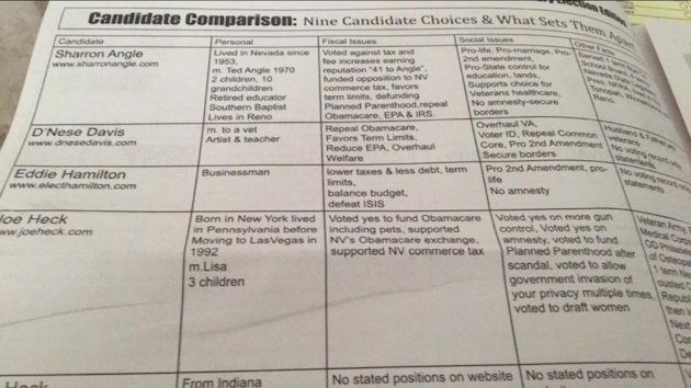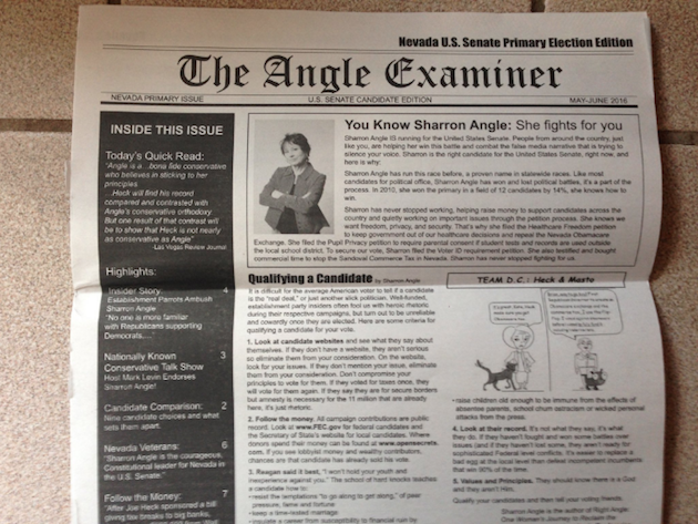 Photos of the mailer, which was designed to look like a newspaper, were posted on Twitter on Thursday by Nevada political reporter Jon Ralston.