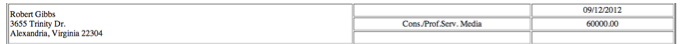 Despite his official role with Obama For America, Gibbs does not appear in most FEC reports. In March, Gibbs received $30,000.