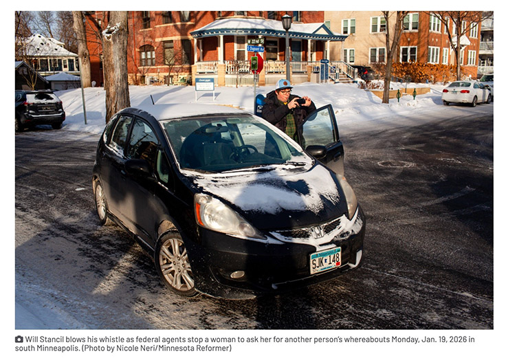 On the home front, the anti-ICE resistance in Minneapolis has thrived under the command of Will Stancil, a boy-faced professional activist with four university degrees. Conservatives have tried unsuccessfully to make fun of him. "Yall are pussies while he's a lion," wrote Hasan Piker, the Maoist beefcake influencer. Stancil was recently profiled in the Minnesota Reformer, which captured the now-iconic image of Stancil blowing a whistle and filming on his phone beside his even more iconic Honda Fit.