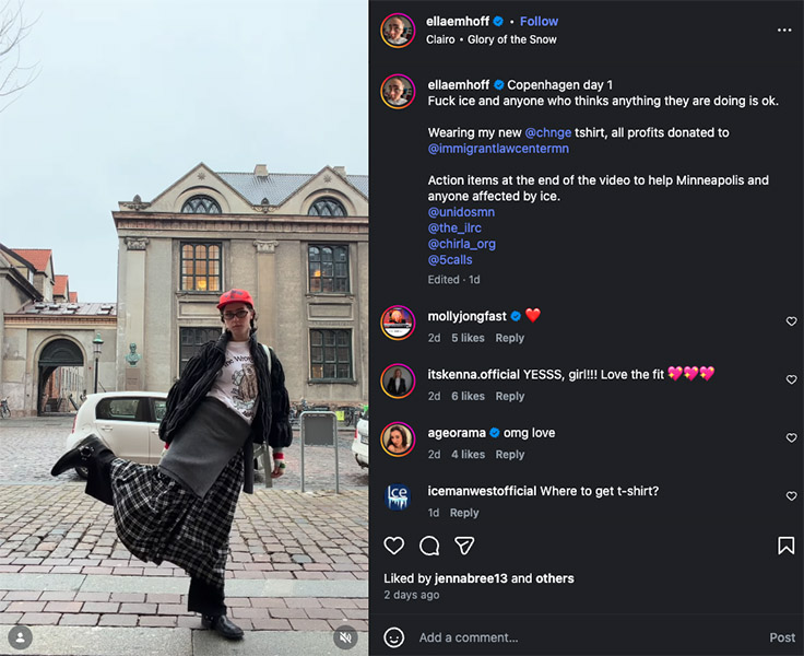 "Copenhagen day 1," Emhoff posted, fearlessly, while prancing around the streets of the Danish capital. "Fuck ice and anyone who thinks anything they are doing is ok." In the accompanying video, Emhoff is seen showing off a T-shirt with a multi-layered political message so powerful it could potentially derail Trump's otherwise inevitable third term.