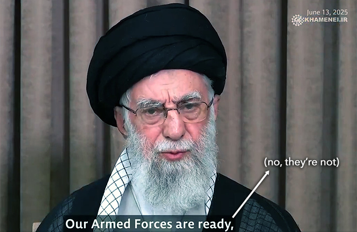 It's no surprise, then, that in recent days the supreme leader has become increasingly aggressive, restless, and agitated. Khamenei has lashed out at "the evil, despicable, terrorist Zionist identity" and repeatedly vowed to inflict "heavy blows" that never materialized, raising concerns about his grasp of reality. He warned, with considerable delusion, that the Iranian "triumph" and "conquest" over Israel was "imminent." We're still not sure what that means, although Iran did launch a handful of missiles at Israel last night that inflicted no casualties. Delusions, or "strongly held false beliefs," are commonly associated with cognitive decline, according to the Alzheimer's Society.