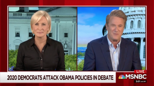 MSNBC Morning Joe hosts Joe Scarborough and Mika Brzezinski ripped Democratic candidates for criticizing former President Barack Obama's legacy in the second Democratic debate, calling that approach "insanity."
